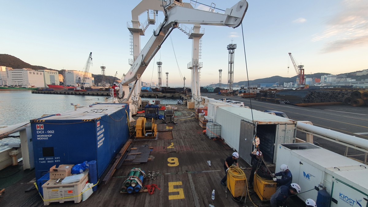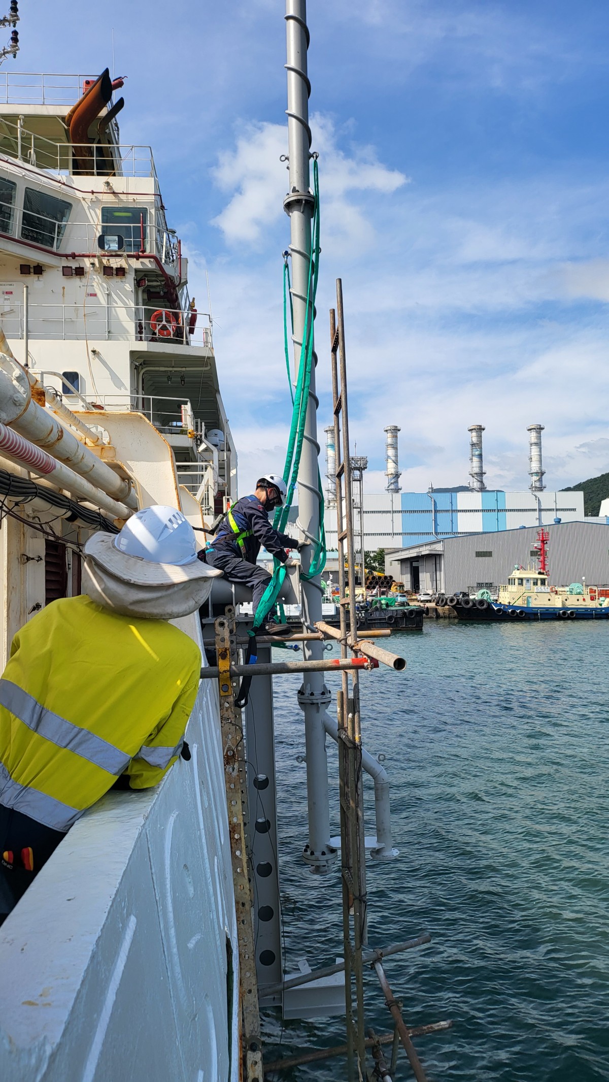 A total of two poles are installed on the starboard side of the ship. Proceed