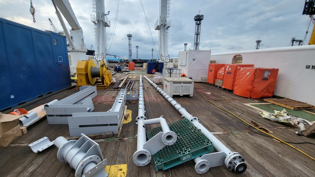 Pole installation on the side of the ship to utilize ultrasonic detection equipment.
