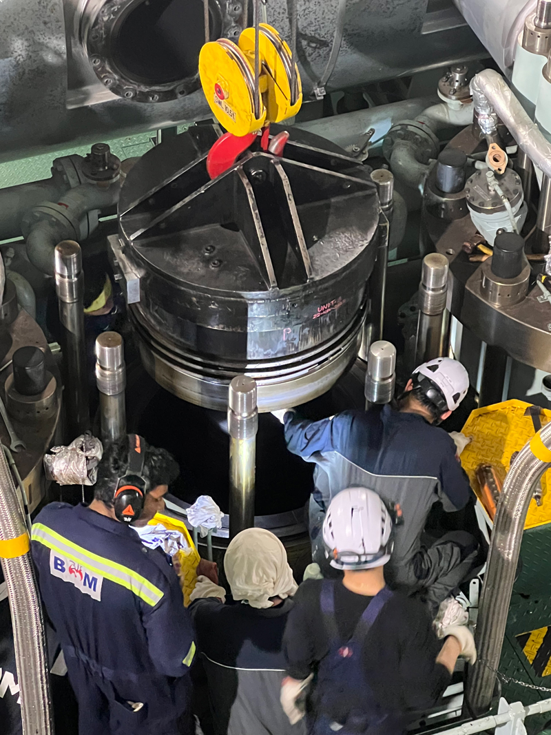 Regarding the damaged piston crown problem, the piston crown on the No.2